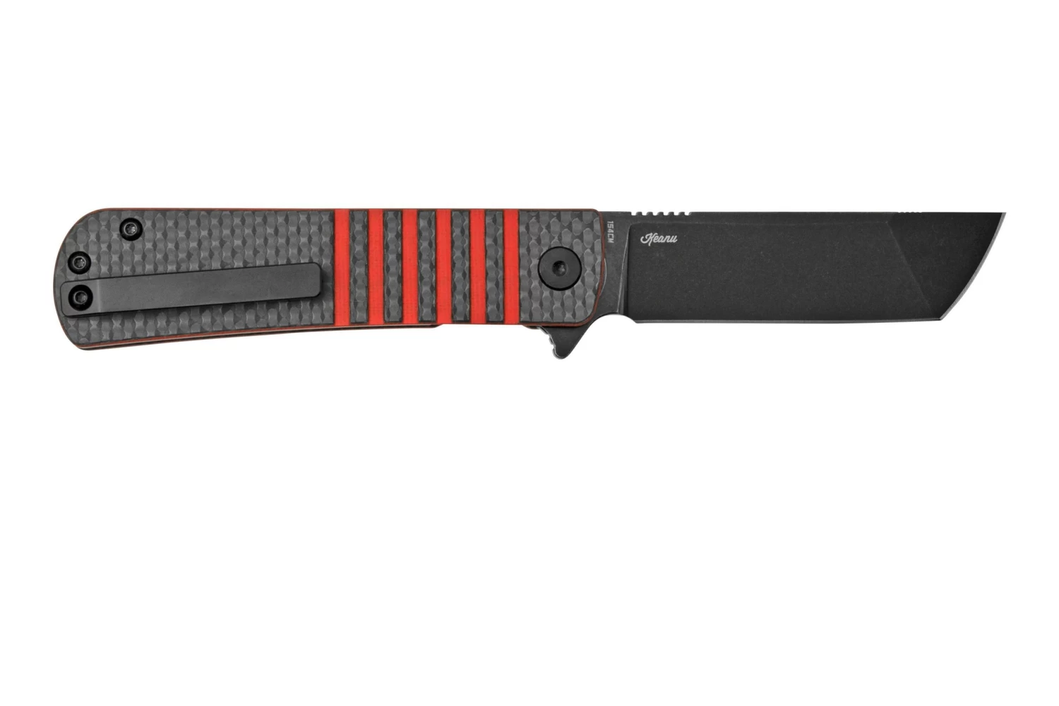 La Bestech Titan BL04C es una navaja ligera porque las cachas están hechas de fibra de carbono. El cuchillo, concretamente, sólo pesa 67 gramos. La navaja es también bastante estrecha. Como tal, apenas se nota en el bolsillo. La hoja está hecha de acero 154CM y se abre con la ayuda del flipper. El cuchillo está bloqueado por un linerlock, para garantizar la seguridad de los dedos durante su uso. El clip de bolsillo de titanio garantiza que la navaja no se caiga fácilmente del bolsillo.