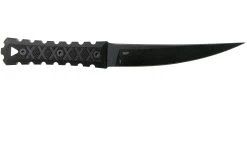 El CRKT Minimalist Katana 2394 es un cuchillo de cuello extremadamente ergonómico, diseñado por Alan Folts. El mango de este cuchillo es realmente interesante y muy llamativo. Las ranuras para los dedos proporcionan un cómodo agarre con tres dedos. El dedo meñique debe apoyarse en el cordón para poder controlar el Minimalist con toda la mano. El lomo de la hoja tiene un reborde llamado jimping para el pulgar. Se trata de pequeñas estrías de agarre que permiten un mayor control.