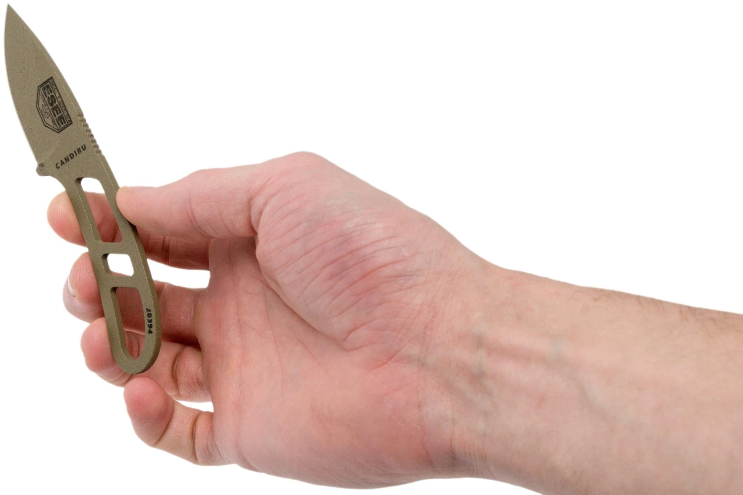 ESEE Candiru Desert Tan CAN-DT Cuchillo De Cuello Con Funda Negra + Clip De Cinturón