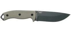 El ESEE Model 4 es un sólido cuchillo de supervivencia con una hoja fabricada en acero al carbono 1095. El revestimiento en polvo extremadamente sostenible de la hoja la protege de la sensibilidad a la corrosión del acero carbono. Las maravillosas cualidades de uso del acero garantizan una vida de satisfacción. Este cuchillo Model 4 está mejorado con una hoja ligeramente más larga que la del ESEE 3, pero con el mismo mango.