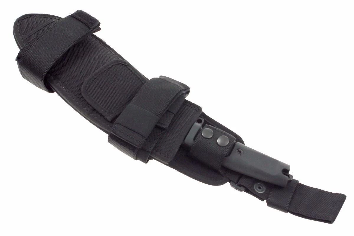 El «kukri», herramienta nepalí que se hizo famosa por el regimiento Gurkha al servicio de Su Majestad, también deriva de las antiguas espadas griegas; es simplemente un machete con un corte hacia adelante. La hoja de corte hacia adelante le permite trabajar como un hacha manteniendo la versatilidad de la hoja larga. Esta serie se desarrolló a partir de una fusión de conceptos modernos y antiguos. La funda es semirrígida con correas en el muslo y una extensión.